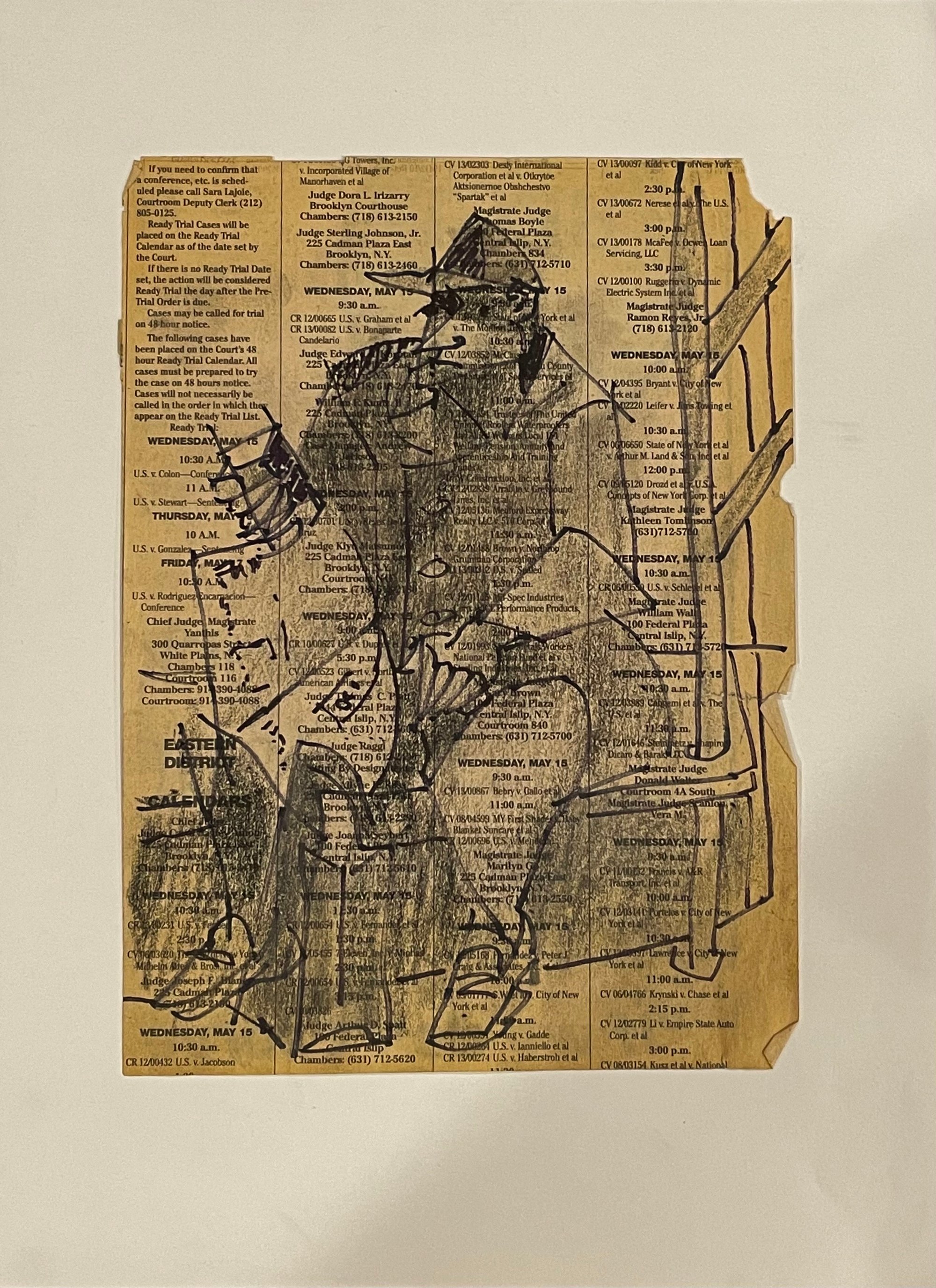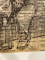 An original Hank Virgona subway sketch on the NY Law Journal. This gentleman was reading his newspaper while Virgona sketched him on this newspaper, using a Sharpie. Hank was sneaky…catching these moments in real time. Everyday people on the subway.