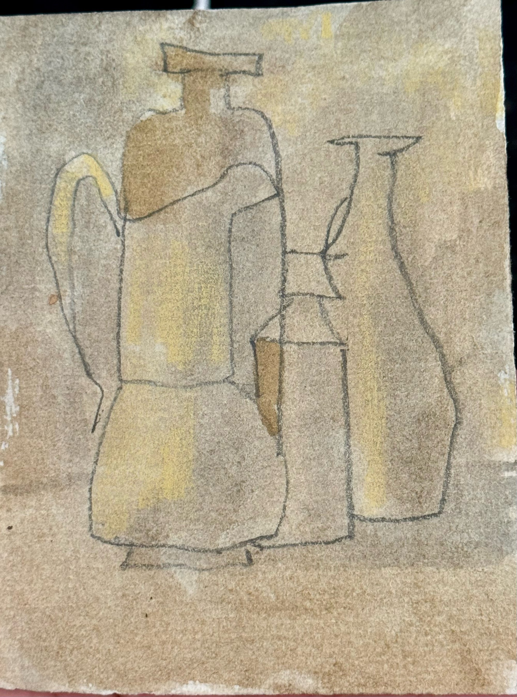 The pitcher is taller today. The Morandi like pals are hanging in the foreground.